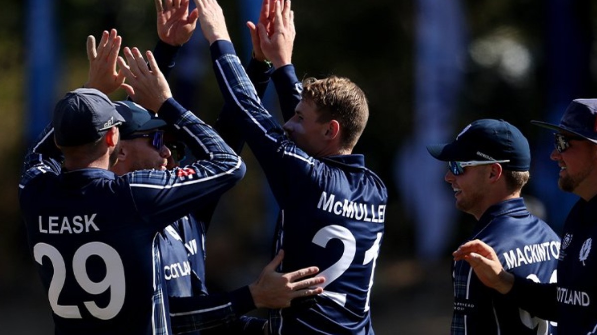 ಸ್ಕಾಟ್ಲೆಂಡ್ ಆಡುವ ಬಳಗ: ಕ್ರಿಸ್ಟೋಫರ್ ಮ್ಯಾಕ್ಬ್ರೈಡ್, ಮ್ಯಾಥ್ಯೂ ಕ್ರಾಸ್ (ವಿಕೆಟ್ ಕೀಪರ್), ಬ್ರಾಂಡನ್ ಮೆಕ್ಮುಲ್ಲೆನ್, ಜ್ಯಾಕ್ ಜಾರ್ವಿಸ್, ರಿಚಿ ಬೆರಿಂಗ್ಟನ್ (ನಾಯಕ), ತೋಮಸ್ ಮ್ಯಾಕಿಂತೋಷ್, ಮೈಕೆಲ್ ಲೀಸ್ಕ್, ಕ್ರಿಸ್ ಗ್ರೀವ್ಸ್, ಮಾರ್ಕ್ ವ್ಯಾಟ್, ಸಫ್ಯಾನ್ ಷರೀಫ್, ಕ್ರಿಸ್ ಸೋಲ್