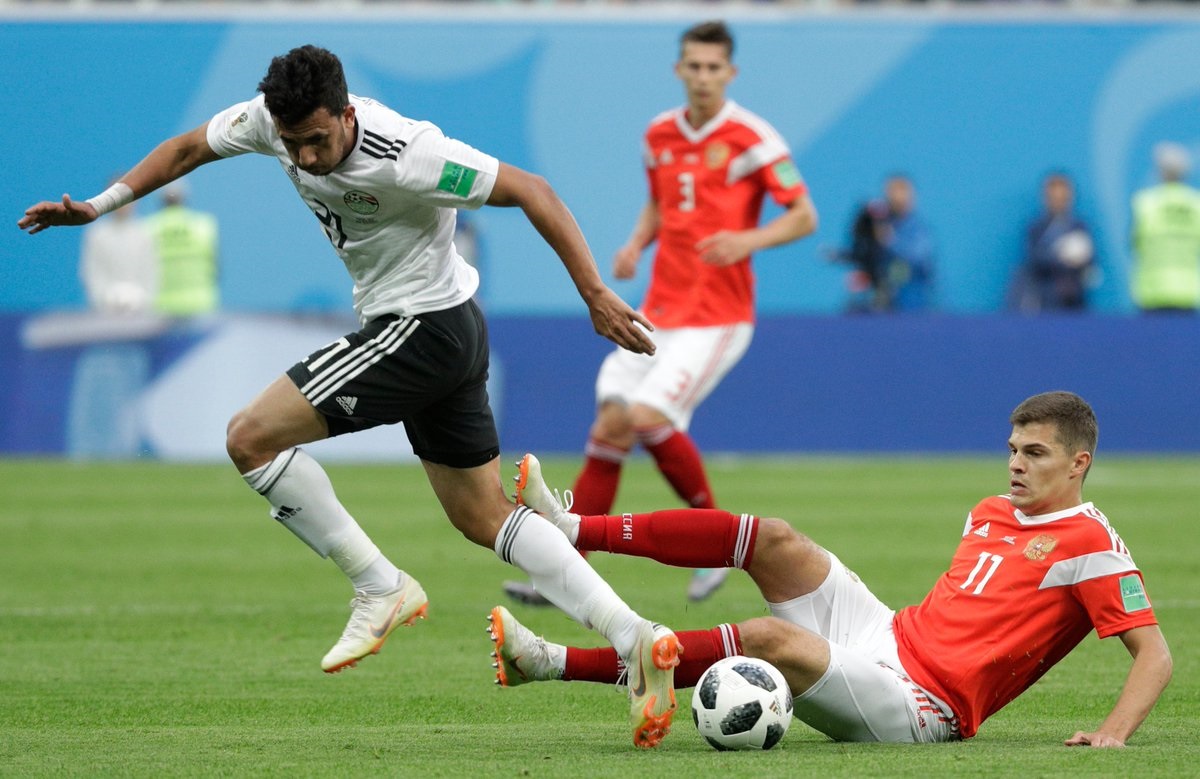 47ನೇ ನಿಮಿಷದಲ್ಲಿ ರಷ್ಯಾ ಪರ ಮೊದಲ ಗೋಲ್ ದಾಖಲಿಸಿದ್ದು ಈಜಿಪ್ಟ್ ಆಟಗಾರ ಅಹಮ್ಮದ್ ಫಾತಿ ಅವರು. ಯಡವಟ್ಟಿನಾಟವಾಡಿ ಫಾತಿ ಎದುರಾಳಿಗೆ ನೆರವಾದರು. 59ನೇ ನಿಮಿಷದಲ್ಲಿ ಡೆನಿಸ್ ಚೆರಿಶೇವ್ ಅವರಿಂದ ಗೋಲ್ ದಾಖಲಾಗಿ ರಷ್ಯಾಕ್ಕೆ 2-0ಯ ಮುನ್ನಡೆ ತಂದುಕೊಟ್ಟಿತು. 62ನೇ ನಿಮಿಷದಲ್ಲಿ ಆರ್ಟೆಮ್ ಡಿಜೂಬಾ ಮೂರನೇ ಗೋಲ್ ಬಾರಿಸಿ ರಷ್ಯಾ ಗೆಲುವನ್ನು ಸಾರಿದರು.