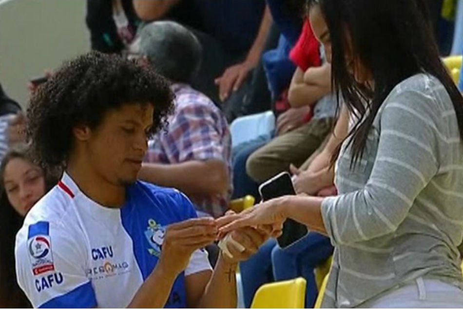 ಈ ವೇಳೆ ಪಂದ್ಯಾರಂಭಗೊಂಡು 2ನೇ ನಿಮಿಷದಲ್ಲೇ ಗೋಲ್ ಬಾರಿಸಿದ ಆಂಟೊಫಾಗಸ್ಟಾ ಮಿಡ್ ಫೀಲ್ಡರ್ ಎಡ್ವರ್ಡ್ ಬೆಲ್ಲೊ ಮೈದಾನದಿಂದ ಪ್ರೇಕ್ಷಕರು ಕೂತಿದ್ದೆಡೆಗೆ ಹತ್ತಿ ಬಂದವರೇ ಅಲ್ಲಿ ಕುಳಿತಿದ್ದ ತನ್ನ ಗೆಳತಿ, ಬೀಚ್ ವಾಲಿಬಾಲ್ ಪ್ಲೇಯರ್ ಗಾಬ್ರಿಯೆಲಾ ಬ್ರಿಟೊ ಮುಂದೆ ಮೊಣಕಾಲೂರಿ, ತಬ್ಬಿ ಪ್ರಪೋಸ್ ಮಾಡಿ ರಿಂಗೂ ತೊಡಿಸಿಬಿಟ್ಟರು!