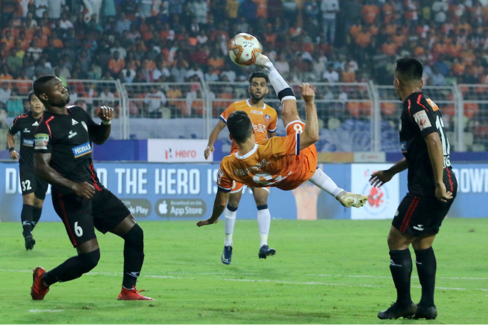 ಗೋವಾ, ಜನವರಿ 8: ಮಿಸ್ಲಾವ್ ಕೊಮೊಸ್ಕಿ 68ನೇ ನಿಮಿಷದಲ್ಲಿ ನೀಡಿದ ಉಡುಗೊರೆ ಗೋಲು ಹಾಗೂ ಫೆರಾನ್ ಕೊರೊಮಿನಾಸ್ (82ನೇ ನಿಮಿಷ) ಗಳಿಸಿದ ಗೋಲು ಗೋವಾ ತಂಡಕ್ಕೆ ನಾರ್ಥ್ ಈಸ್ಟ್ ಯುನೈಟೆಡ್ ವಿರುದ್ಧ 2-0 ಗೋಲಿನ ಜಯ ತಂದುಕೊಟ್ಟಿತು. ಈ ಜಯದೊಂದಿಗೆ ಗೋವಾ ಮತ್ತೆ ಅಗ್ರಸ್ಥಾನಕ್ಕೇರಿತು, ದ್ವಿತಿಯಾರ್ಧದಲ್ಲಿ ನಾರ್ಥ್ ಈಸ್ಟ್ ಯುನೈಟೆಡ್ ಆಕ್ರಮಣಕಾರಿ ಆಟಕ್ಕೆ ಮನ ಮಾಡಿತು. ಪರಿಣಾಮ ಪ್ರಮಾದದ ಹೆಜ್ಜೆ ಇಟ್ಟಿತು. ಒಂದು ಉಡುಗೊರೆ ಗೋಲು ನೀಡಿತಲ್ಲದೆ, ಕೊನೆಯ 15 ನಿಮಿಷಗಳ ಆಟವನ್ನು ಕೇವಲ ಹತ್ತುಮಂದಿ ಆಡಬೇಕಾಯಿತು. ಫೆರಾನ್ ಕೊರೊಮಿನಾಸ್ ಪ್ರಸಕ್ತ ಋತುವಿನಲ್ಲಿ ಎಂಟನೇ ಗೋಲು ಗಳಿಸಿದರು.