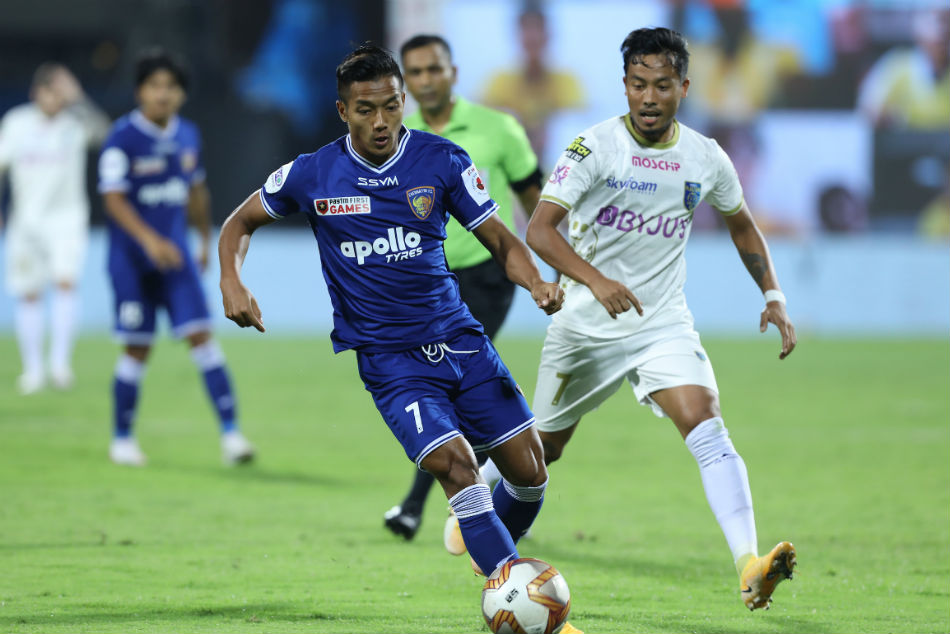 ಗೋಲಿಲ್ಲದ ಪ್ರಥಮಾರ್ಧ: ಚೆನ್ನೈಯಿನ್ ಎಫ್ ಸಿ ಹಾಗೂ ಕೇರಳ ಬ್ಲಾಸ್ಟರ್ಸ್ ತಂಡಗಳ ನಡುವಿನ ಪಂದ್ಯದ ಪ್ರಥಮಾರ್ಧ ಗೋಲಿಲ್ಲದೆ ಅಂತ್ಯಗೊಂಡಿತು. ಇತ್ತಂಡಗಳು ಡಿಫೆನ್ಸ್ ನಲ್ಲಿ ಉತ್ತಮ ರೀತಿಯಲ್ಲಿ ಆಟ ಪ್ರದರ್ಶಿಸಿದ ಕಾರಣ ಅಲ್ಲಿ ಗೋಲಿಗೆ ಅವಕಾಶ ಮೂಡಿಯಬರಲಿಲ್ಲ. 3ನೇ ನಿಮಿಷದಲ್ಲಿ ಅಲ್ಬಿನೊ ಗೋಮ್ಸ್ ಉತ್ತಮ ರೀತಿಯಲ್ಲಿ ಚೆಂಡನ್ನು ತಡೆದು ಗೋಲಾಗುವುದನ್ನು ತಡೆದರು.