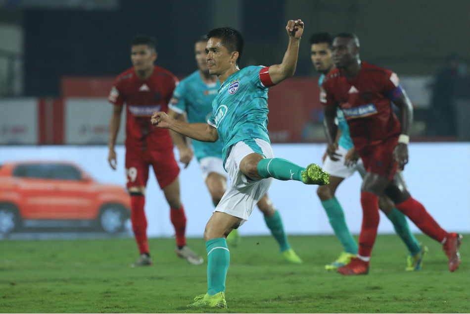 ಗುವಾಹಟಿ, ಡಿಸೆಂಬರ್ 18: ನಾಯಕ ಸುನಿಲ್ ಛೆಟ್ರಿ 68ನೇ ನಿಮಿಷದಲ್ಲಿ ಪೆನಾಲ್ಟಿ ಮೂಲಕ ಹಾಗೂ ಆಲ್ಬರ್ಟ್ ಸರ್ರಾನ್ ಪೊಲೊ (81 ನೇ ನಿಮಿಷ) ಗಳಿಸಿದ ಗೋಲುಗಳ ನೆರವಿನಿಂದ ನಾರ್ತ್ ಈಸ್ಟ್ ಯುನೈಟೆಡ್ ತಂಡವನ್ನು 2-0 ಗೋಲುಗಳ ಅಂತರದಲ್ಲಿ ಮಣಿಸಿದ ಹಾಲಿ ಚಾಂಪಿಯನ್ ಬೆಂಗಳೂರು ಎಫ್ ಸಿ ಇಂಡಿಯನ್ ಸೂಪರ್ ಲೀಗ್ ನಲ್ಲಿ ಅಗ್ರ ಸ್ಥಾನಕ್ಕೇರಿತು.