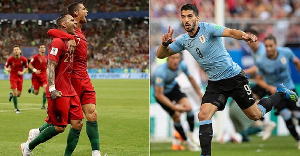ಮಾಸ್ಕೋ, ಜೂ. 30: ಫೀಫಾ ವಿಶ್ವಕಪ್ ಅಂತಿಮ 16ನೇ ಸುತ್ತಿನಲ್ಲಿ ಇಂದು ಉರುಗ್ವೆ ಮತ್ತು ಪೋರ್ಚುಗಲ್ ತಂಡಗಳು ಮುಖಾಮುಖಿಯಾಗಿವೆ. ಪೋರ್ಚುಗಲ್ ಸ್ಟಾರ್ ಆಟಗಾರ ಕ್ರಿಸ್ಚಿಯಾನೊ ರೊನಾಲ್ಡೋ ಕಣಕ್ಕಿಳಿದಿದ್ದು, ಕಾದಾಟ ಕುತೂಹಲ ಮೂಡಿಸಿದೆ.