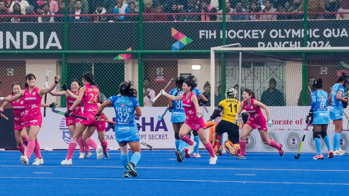 ಶುಕ್ರವಾರ ರಾಂಚಿಯ ಹಾಕಿ ಕ್ರೀಡಾಂಗಣದಲ್ಲಿ ನಡೆದ ಎಫ್ಐಎಚ್ ಹಾಕಿ ಒಲಿಂಪಿಕ್ ಕ್ವಾಲಿಫೈಯರ್ 2024 ರ ಕಂಚಿನ ಪದಕದ ಪಂದ್ಯದಲ್ಲಿ ಭಾರತೀಯ ಮಹಿಳಾ ಹಾಕಿ ತಂಡವು ನಿರಾಸೆ ಅನುಭವಿಸಿದೆ. ಮೂರನೇ ಸ್ಥಾನಕ್ಕಾಗಿ ನಡೆದ ಪಂದ್ಯದಲ್ಲಿ ಆತಿಥೇಯ ತಂಡ 0-1 ಗೋಲುಗಳ ಅಂತರದಿಂದ ಜಪಾನ್ ವಿರುದ್ಧ ಸೋಲು ಕಂಡಿತು. ಈ ಮೂಲಕ ಭಾರತ ಮಹಿಳಾ ತಂಡ ಪ್ಯಾರಿಸ್ ಒಲಿಂಪಿಕ್ಸ್ಗೆ ಅರ್ಹತೆ ಪಡೆಯುವ ನಿರೀಕ್ಷೆ ಕೊನೆಗೊಂಡಿದೆ.
