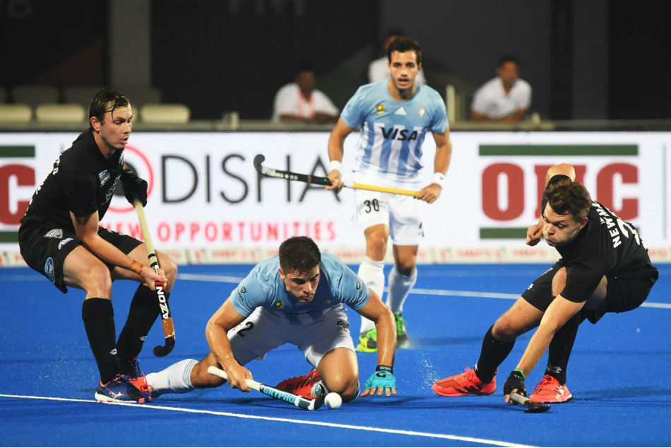 ಭುವನೇಶ್ವರ್, ಡಿಸೆಂಬರ್ 3: ಒಡಿಶಾದ ಭುವನೇಶ್ವರ್ನ ಕಳಿಂಗ ಅಂತಾರಾಷ್ಟ್ರೀಯ ಸ್ಟೇಡಿಯಂನಲ್ಲಿ ಸೋಮವಾರ (ಡಿಸೆಂಬರ್ 3) ನಡೆದ ಪುರುಷರ ಗ್ರೂಪ್ 'ಎ' ವಿಶ್ವಕಪ್ ಪಂದ್ಯದಲ್ಲಿ ನ್ಯೂಜಿಲ್ಯಾಂಡ್ಗೆ ಅರ್ಜೆಂಟೀನಾ ತಂಡ 3-0 ಅಂತರದ ಸೋಲುಣಿಸಿದೆ. ಈ ಮೂಲಕ ಅರ್ಜೆಂಟೀನಾ ತಂಡ ಟೂರ್ನಿಯ ಕ್ವಾರ್ಟರ್ ಫೈನಲ್ಗೆ ನೇರ ಪ್ರವೇಶ ಗಿಟ್ಟಿಸಿಕೊಳ್ಳಲಿದೆ.