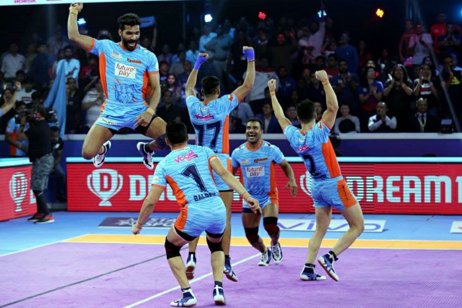 ಮೊದಲಿಗೆ ಬೆಂಗಾಲ್ ವಾರಿಯರ್ಸ್ ಮತ್ತು ಜೈಪುರ್ ಪಿಂಕ್ ಪ್ಯಾಂಥರ್ಸ್ ತಂಡಗಳ ನಡುವೆ ನಡೆದ ಪಂದ್ಯದಲ್ಲಿ ಜೈಪುರ ಪಿಂಕ್ ಪ್ಯಾಂಥರ್ಸ್ ವಿರುದ್ಧ ಬೆಂಗಾಲ್ ವಾರಿಯರ್ಸ್ 31-28 ಅಂಕಗಳ ಅಂತರದಲ್ಲಿ ಜಯ ಸಾಧಿಸಿದೆ. ಬೆಂಗಾಲ್ ವಾರಿಯರ್ಸ್ ತಂಡದ ನಾಯಕ ಮಣೀಂದರ್ ಸಿಂಗ್ ಹಾಗೂ ಆಲ್ ರೌಂಡರ್ ಮೊಹಮ್ಮದ್ ನಬಿಭಕ್ಷ್ ಹಾಲಿ ಚಾಂಪಿಯನ್ಸ್ ಬೆಂಗಾಲ್ ವಾರಿಯರ್ಸ್ ತಂಡಕ್ಕೆ ಜಯವನ್ನು ತಂದುಕೊಟ್ಟರು. ಬೆಂಗಾಲ್ ವಾರಿಯರ್ಸ್ ತಂಡದ ಮಣಿಂದರ್ ಸಿಂಗ್ 13 ಅಂಕಗಳನ್ನು ಕಲೆ ಹಾಕಿದರೆ, ಮೊಹಮ್ಮದ್ ನಬಿಭಕ್ಷ್ 10 ಅಂಕಗಳನ್ನು ಪಡೆದರು. ಮೊಹಮ್ಮದ್ ನಬಿಭಕ್ಷ್ ಪಂದ್ಯದ ಅಂತಿಮ ಸೂಪರ್ ಟ್ಯಾಕಲ್ ಮಾಡುವ ಮೂಲಕ ಬೆಂಗಾಲ್ ವಾರಿಯರ್ಸ್ ತಂಡಕ್ಕೆ ಜಯ ತಂದುಕೊಡುವಲ್ಲಿ ಪ್ರಮುಖ ಪಾತ್ರ ವಹಿಸಿದರು.