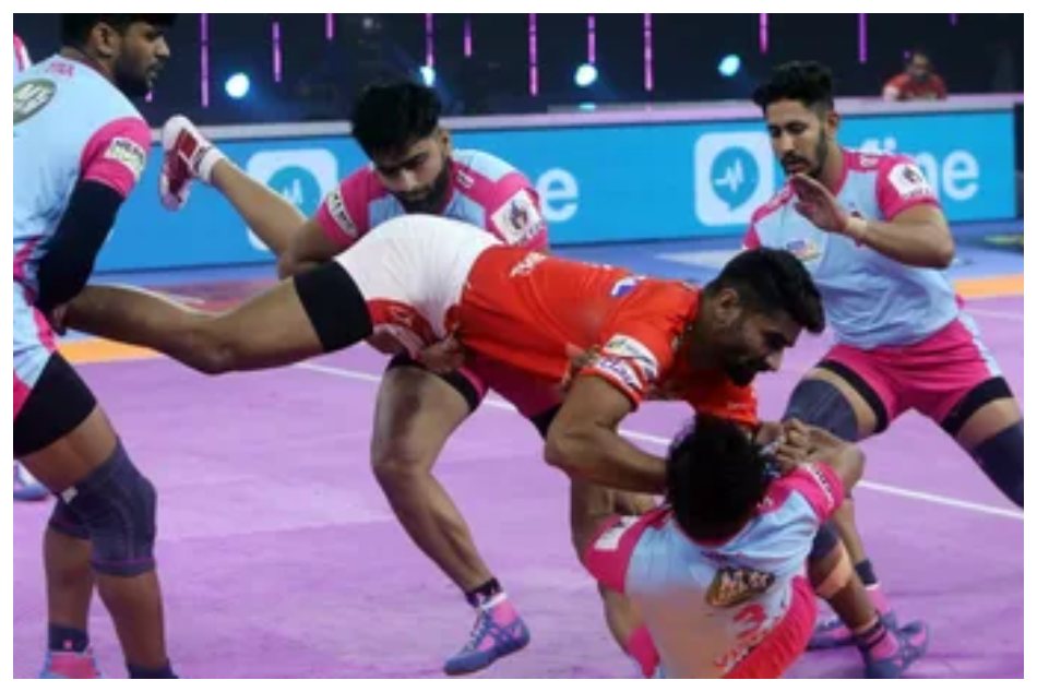 ಪ್ರೊ ಕಬಡ್ಡ ಲೀಗ್ನ ಎರಡನೇ ದಿನದ ಮೊದಲ ಪಂದ್ಯದಲ್ಲಿ ಪಿಂಕ್ ಪ್ಯಾಂಥರ್ಸ್ ತಂಡ ಹಾಗೂ ಗುಜರಾತ್ ಜೈಂಟ್ಸ್ ತಂಡ ಮುಖಾಮುಖಿಯಾಗಿದೆ. ಈ ಪಂದ್ಯದಲ್ಲಿ ಗುಜರಾತ್ ಜೈಂಟ್ಸ್ ತಂಡ ಪಿಂಕ್ ಪ್ಯಾಂಥರ್ಸ್ ವಿರುದ್ಧ ಗೆದ್ದು ಬೀಗಿದೆ. ರೋಚಕವಾಗಿ ನಡದ ಈ ಸೆಣೆಸಾಟದಲ್ಲಿ 34-27 ಅಂತರದಿಂದ ಗುಜರಾತ್ ಜೈಂಟ್ಸ್ ಗೆಲುವು ಸಾಧಿಸಿದೆ.