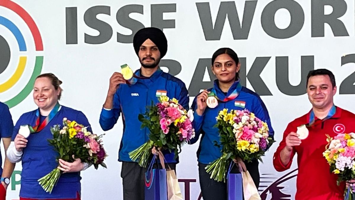 ಅಜರ್ಜೈಜಾನ್ ರಾಜಧಾನಿ ಬಾಕುವಿನಲ್ಲಿ ನಡೆಯುತ್ತಿರುವ ಐಎಸ್ಎಸ್ಎಫ್ ಶೂಟಿಂಗ್ ವಿಶ್ವಕಪ್ನಲ್ಲಿ ಭಾರತ ಮೊದಲ ಚಿನ್ನದ ಪದಕ ಗೆದ್ದುಕೊಂಡಿದೆ. ಕನ್ನಡತಿ ದಿವ್ಯಾ ಟಿಎಸ್ ಹಾಗೂ ಸರಬ್ಜೋತ್ ಸಿಂಗ್ ಜೋಡಿ 10 ಮೀಟರ್ ಏರ್ ಪಿಸ್ತೂಲ್ ಮಿಶ್ರ ಡಬಲ್ಸ್ ವಿಭಾಗದ ಫೈನಲ್ನಲ್ಲಿ ಗೆದ್ದು ಈ ಸಾಧನೆ ಮಾಡಿದ್ದಾರೆ. ಸರ್ಬಿಯಾದ ಎದುರಾಳಿಗಳಾದ ದಮಿರ್ ಹಾಗೂ ಜೊರೊನಾ ಜೋಡಿಯ ವಿರುದ್ಧ ಫೈನಲ್ನಲ್ಲಿ ಚಿನ್ನದ ಪದಕಕ್ಕಾಗಿ ಪೈಪೋಟಿ ನಡೆಸಿದ ಭಾರತೀಯ ಜೋಡಿ 16-14 ಅಂಕಗಳ ಅಂತರದಿಂದ ಗೆಲುವು ಸಾಧಿಸಿದ್ದಾರೆ.