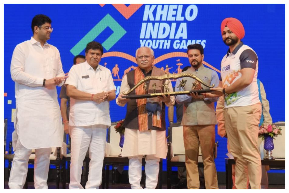 4ನೇ ಆವೃತ್ತಿಯ ಎಸ್ಬಿಐ ಖೇಲೋ ಇಂಡಿಯಾ ಯೂತ್ ಗೇಮ್ಸ್ಗೆ ದಿನಗಣನೆ (ಜೂನ್ 4ರಿಂದ) ಆರಂಭಗೊಂಡಿದ್ದು, ಶನಿವಾರ ಪಂಚಕುಲಾದಲ್ಲಿ ನಡೆದ ಅದ್ಧೂರಿ ಕಾರ್ಯಕ್ರಮದಲ್ಲಿ ಕ್ರೀಡಾಕೂಟದ ಅಧಿಕೃತ ಚಿಹ್ನೆ (ಲೋಗೋ), ಮಾಸ್ಕಟ್, ಜೆರ್ಸಿ ಹಾಗೂ ಗೀತೆಯನ್ನು ಅನಾವರಣಗೊಳಿಸಲಾಯಿತು.