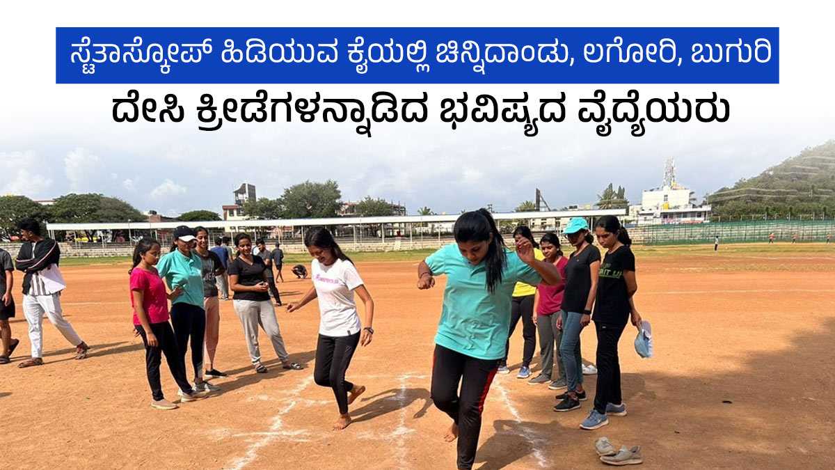 ಲಗೋರಿ, ಗೋಲಿ, ಚಿನ್ನಿದಾಂಡು, ಬುಗುರಿ ಮತ್ತು ಕುಂಟೆ ಬಿಲ್ಲೆ ಆಟದ ಸ್ಪರ್ಧೆಗಳಲ್ಲಿ ಪಾಲ್ಗೊಂಡು ವೈದ್ಯಕೀಯ ವಿದ್ಯಾರ್ಥಿಗಳು ಖುಷಿಪಟ್ಟರು. ಗ್ರಾಮೀಣ ಪ್ರದೇಶದಲ್ಲಿ ಆಟವಾಡುವ ಕುಂಟೆ ಬಿಲ್ಲೆ ಆಡಿದ ವೈದ್ಯ ವಿದ್ಯಾರ್ಥಿನಿಯರು, ಬಾಕ್ಸ್ನೊಳಗೆ ಹೆಜ್ಜೆ ಹಾಕುತ್ತಾ ಸಂತಸಗೊಂಡರು.