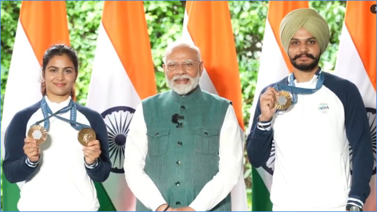ಗುರುವಾರ ಕೆಂಪು ಕೋಟೆಯಲ್ಲಿನ ಕಾರ್ಯಕ್ರಮ ಮುಗಿದ ಬಳಿಕ ಪ್ರಧಾನಿ ನರೇಂದ್ರ ಮೋದಿ ಅವರು ಒಲಿಂಪಿಯನ್ಸ್ಗಳನ್ನು ಭೇಟಿ ಮಾಡಿದರು. ವಿಡಿಯೋದಲ್ಲಿ ಪ್ರಧಾನಿ ಮೋದಿ ಅವರು ಭಾರತ ಹಾಕಿ ತಂಡವನ್ನು ಭೇಟಿಯಾದರು. ಇದೇ ವೇಳಿ ಆಟಗಾರರ ಕೊರಳಲ್ಲಿನ ಪದಕವನ್ನು ನೋಡಿ ಖುಷಿ ಪಟ್ಟರು. ಬಳಿಕ ಒಲಿಂಪಿಕ್ಸ್ನಲ್ಲಿ ಎರಡು ಕಂಚಿನ ಸಾಧನೆ ಮಾಡಿರುವ ಮನು ಭಾಕರ್ ಹಾಗೂ ಸರ್ಬಜೋತ್ ಸಿಂಗ್ ಅವರನ್ನು ಪ್ರಧಾನಿ ಭೇಟಿ ಆದರು.