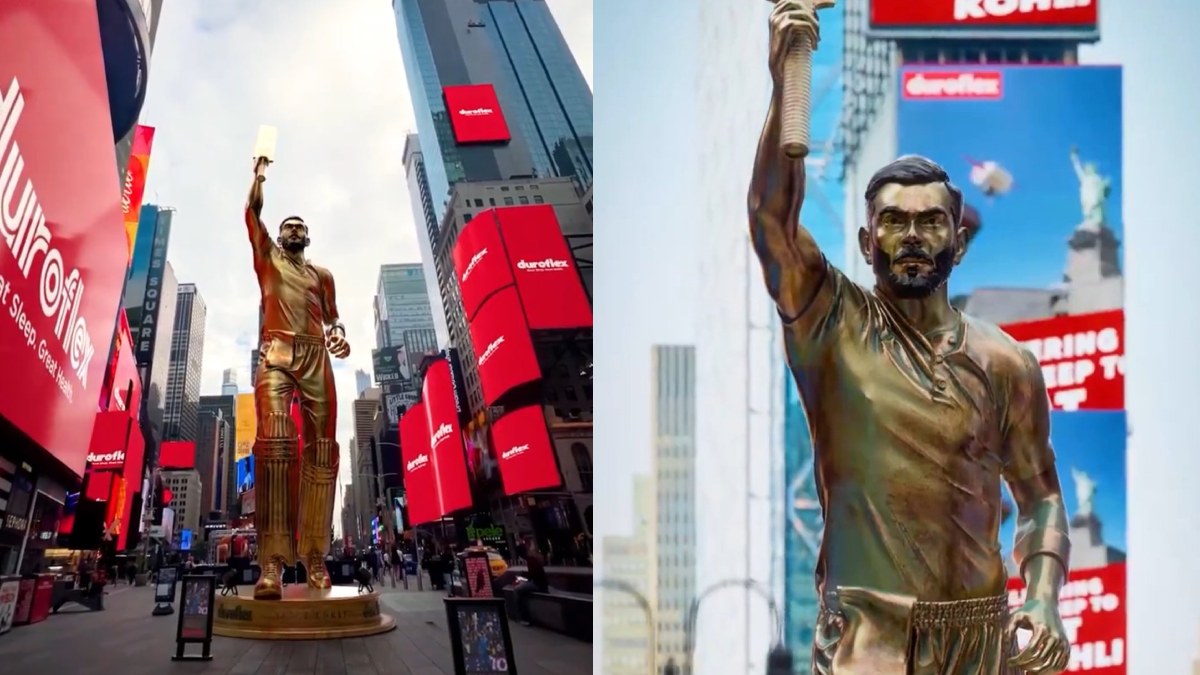 "ಈಗಷ್ಟೇ ಅನಾವರಣಗೊಂಡಿದೆ, ಐಕಾನಿಕ್ ಟೈಮ್ಸ್ ಸ್ಕ್ವೇರ್ನಲ್ಲಿ ವಿರಾಟ್ ಕೊಹ್ಲಿಯ ಜೀವಮಾನದ ದೊಡ್ಡ ಪ್ರತಿಮೆ. ಈ ಕಿಂಗ್ನ ಕರ್ತವ್ಯದಿಂದಾಗಿ, ನಾವು ಜಾಗತಿಕವಾಗಿ ಹೋಗುತ್ತಿದ್ದೇವೆ ಮತ್ತು ಇತಿಹಾಸವನ್ನು ನಿರ್ಮಿಸುತ್ತಿದ್ದೇವೆ. ನಾವು ವಿರಾಟ್ ಕೊಹ್ಲಿಗೆ ಉತ್ತಮ ನಿದ್ರೆ ಮತ್ತು ಉತ್ತಮ ಆರೋಗ್ಯವನ್ನು ನೀಡುತ್ತಿದ್ದೇವೆ," ಎಂದು ಡ್ಯುರೊಫ್ಲೆಕ್ಸ್ ಟ್ವೀಟ್ ಮಾಡಿದೆ.