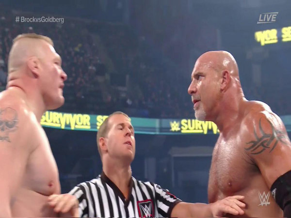 ಬ್ಲಾಕ್ ಲೆಸ್ನರ್ ನನ್ನು ಹೊಡೆದುರುಳಿಸಿ ಪ್ರೇಕ್ಷಕರ ನಿನಾದಗಳನ್ನು ಕೇಳುತ್ತಿರುವ ಗೋಲ್ಡ್ ಬರ್ಗ್